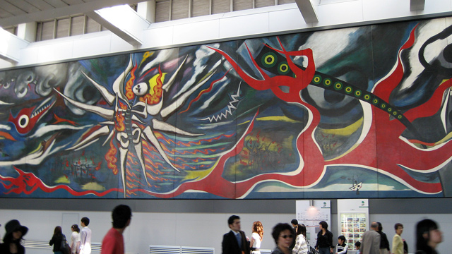 JR渋谷駅と京王井の頭線を結ぶ連絡通路に設置された岡本太郎・作「明日の神話」を